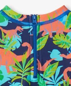 Journey through the jungle with our Baby Boys Dino Jungle One-Piece Rashguard. The nylon and spandex blend guarantees a comfortable fit, so your little paleontologist can embrace aquatic adventures in style.