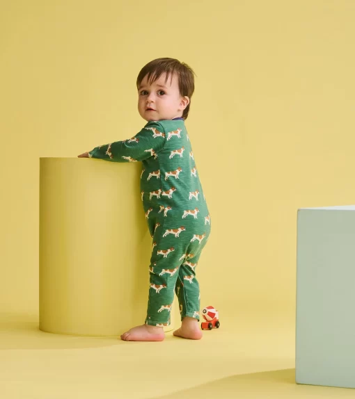 What else could a boy want more than wearing something depicting their best friend? Dress your baby boy in the Baby Boys French Bulldog Long Sleeve Romper made of soft premium organic cotton. Ensure your little one stays cozy, warm and cute all Autumn.