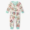 The Baby Boys Mega Monster Trucks Bamboo Sleeper in Natural is made from a soft bamboo blend and features a footless, tight fit with a playful all-over print of blue, red, and green monster trucks, this sleeper has a front zipper from ankle to neck with a snap at the top for easy changing, elastic cuffed wrists and ankles, and a zipper guard for safety.