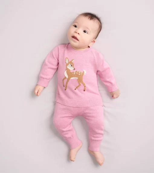 Watch your baby grow like a baby doe in the Baby Girls Baby Doe Pullover Sweater & Pants set. Made of soft cotton, this fall outfit is very comfortable and cute featuring a design of a doe. The design adds a touch of nature-inspired beauty to the look and is great for any cozy day.