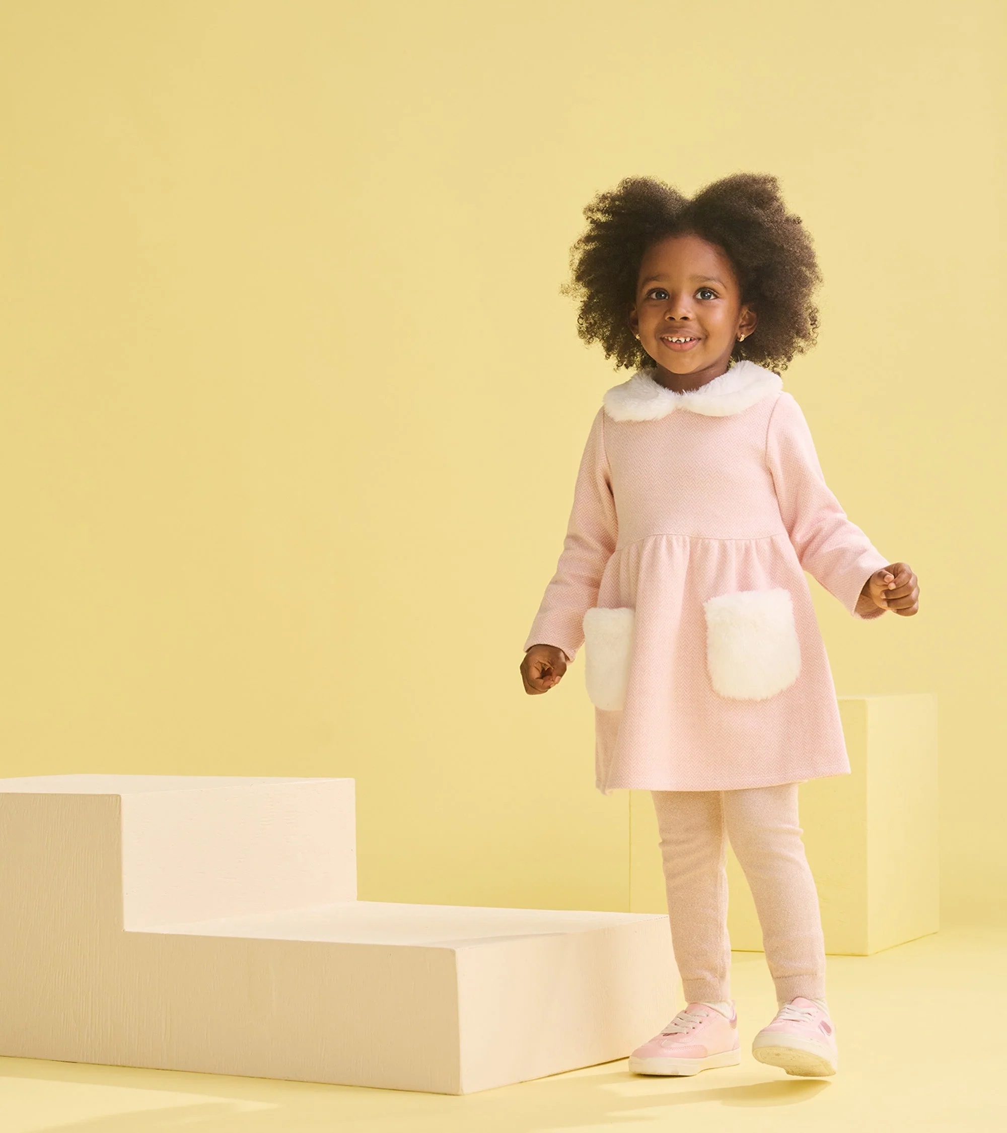 Add some sparkle to her wardrobe with the Baby Girls Gold Glitter Cable Knit Leggings! These glittery leggings combine a comfy cotton blend with a hint of metallic sparkle, making them perfect for special occasions or adding a touch of glam to everyday outfits.