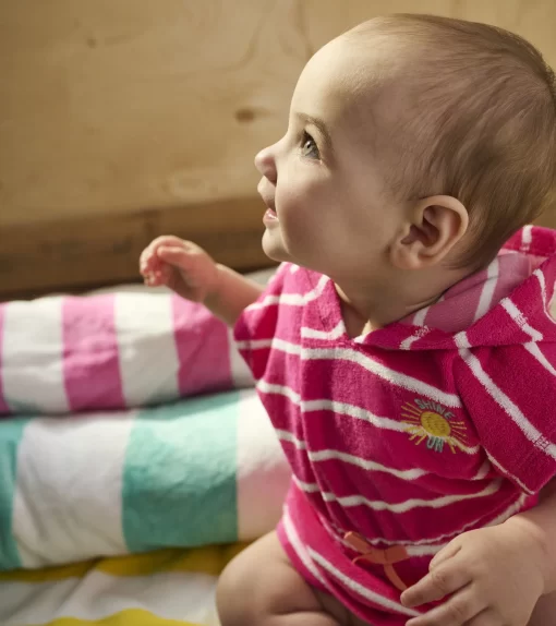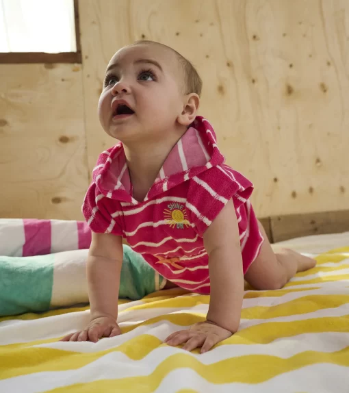 Wrap your little princess in the cozy embrace of our Baby Girls Pink Paradise Terry Cover-Up. Made with a sumptuous blend of cotton and polyester, this cover-up is perfect for those breezy beach days. The charming pink hue and soft terry fabric will make your baby girl the cutest bud in the garden of beachgoers.