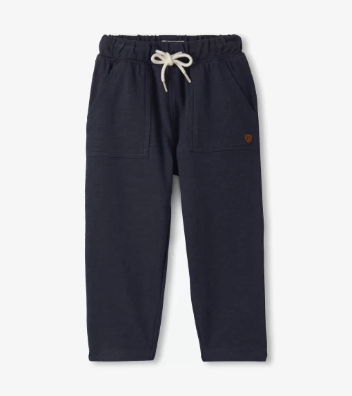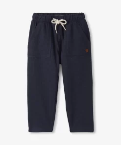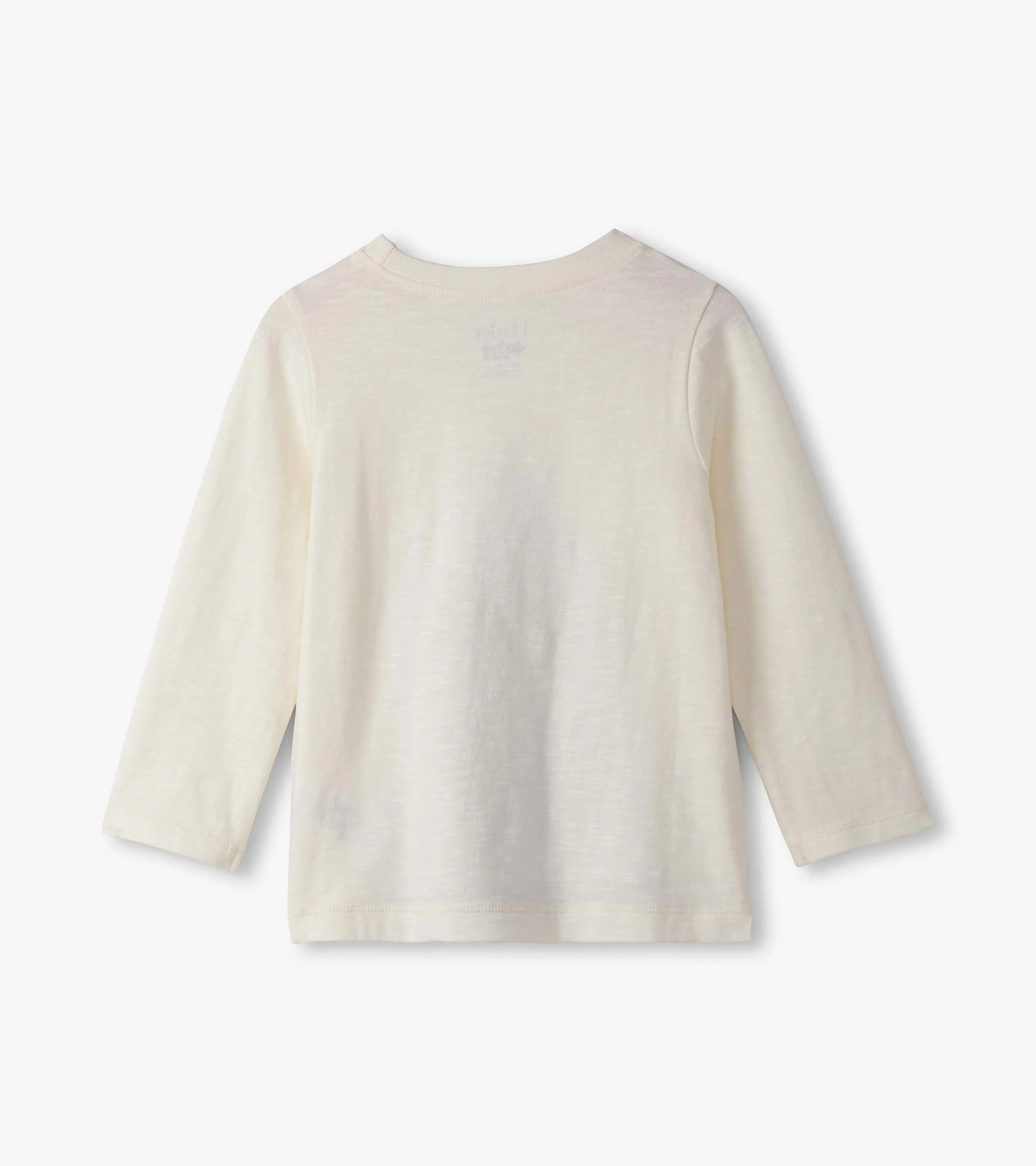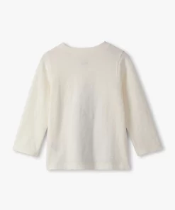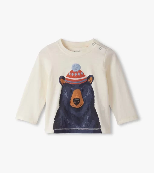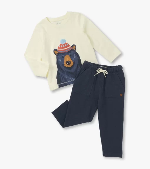 Keep him cute and cozy in the Baby & Toddler Boys Bear Graphic Lounge Set in Natural! The light cream long sleeve t-shirt features a classic crew neck and a standout bear graphic wearing a toque, rising out of the hem for added charm. Paired with heathered dark blue leggings-style sweatpants made from a soft, stretchy cotton blend, this set is all about comfort and function. The pants feature a functional white drawstring and large front patch pockets