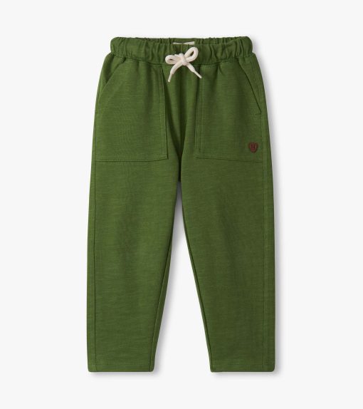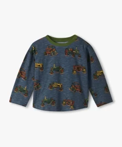 The Baby & Toddler Boys Landscape Tractors Graphic Lounge Set in Blue is made for little ones who love big wheels and wide-open fields. The heathered navy blue long sleeve t-shirt features a soft olive green crew neck and an all-over print of colourful tractors in yellow, green, and red, bringing a burst of fun to his everyday look. The matching heathered olive green sweatpants are crafted from a cozy, stretchy cotton blend and finished with a functional white drawstring and roomy front patch pockets.
