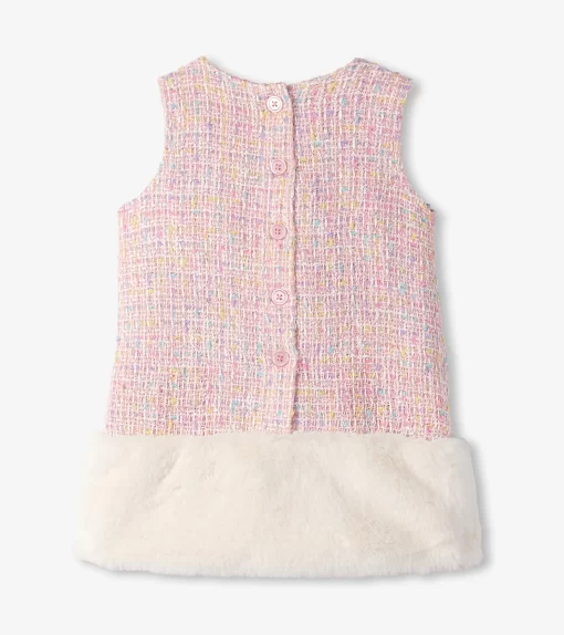 The Baby & Toddler Girls Aurora Pink Tweed Faux Fur Trim Dress is as cute as it is cozy. Made from soft polyester, this tweed dress features a faux fur trim, perfect for adding a touch of elegance to her little wardrobe.
