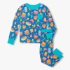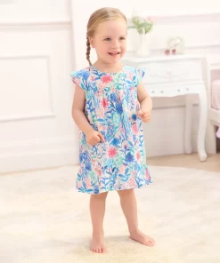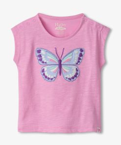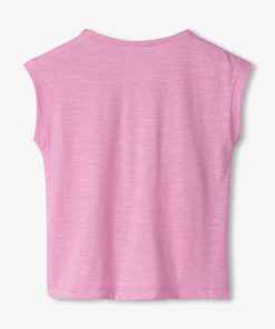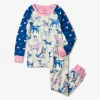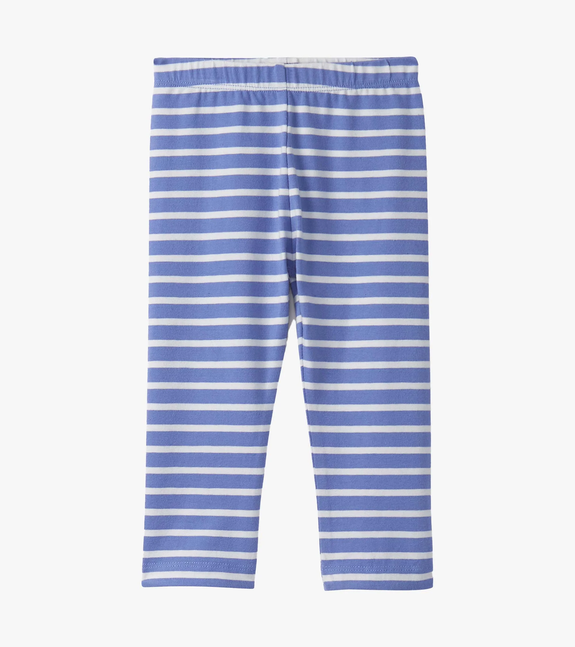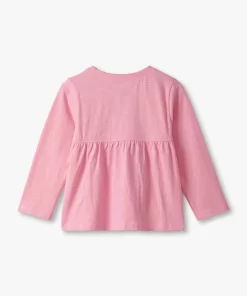Bring playful charm to her everyday wardrobe with the Baby & Toddler Girls Kitty T-Shirt and Legging Set in Pink! This sweet set features a heathered pink long-sleeve crew neck tee with a gathered empire seam at the back for a gentle, flowy fit. The front showcases a large watercolour-style graphic of a purple and white cat wearing a fuchsia ribbon, perfect for little animal lovers. Coordinating white and blue horizontal striped leggings offer all-day comfort with a soft, stretchy cotton blend and a snug elastic waistband.