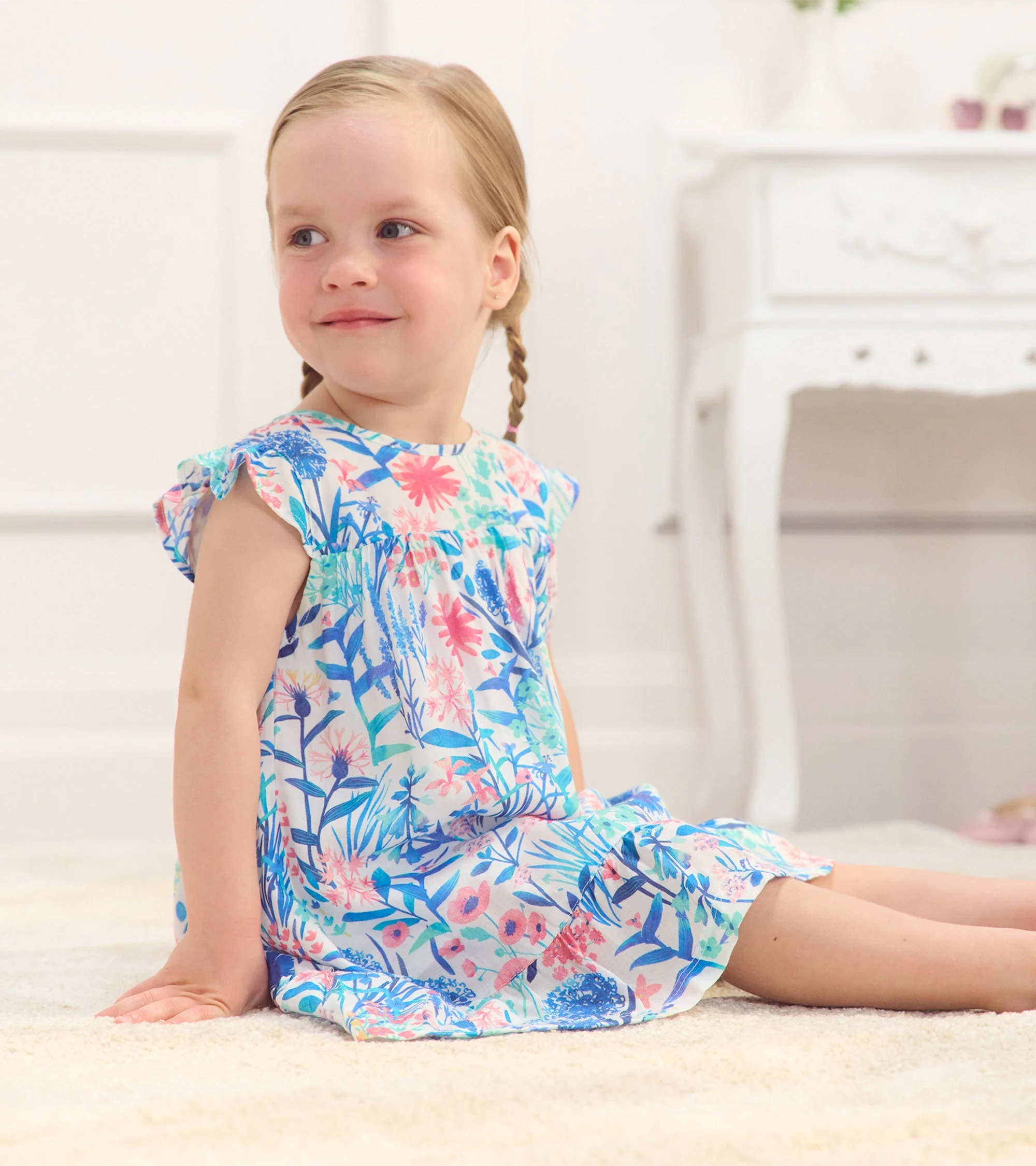 The Baby & Toddler Girls Wildflower Flounce Dress is as sweet as a meadow in bloom! Made from soft modal, this dress showcases a lovely wildflower print and flounce accents for a whimsical look. Lightweight and breathable, it’s perfect for warm days or special occasions. Pair it with sandals for a picture-perfect outfit she’ll love.