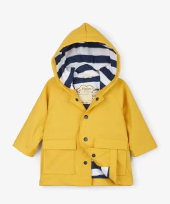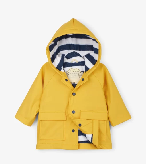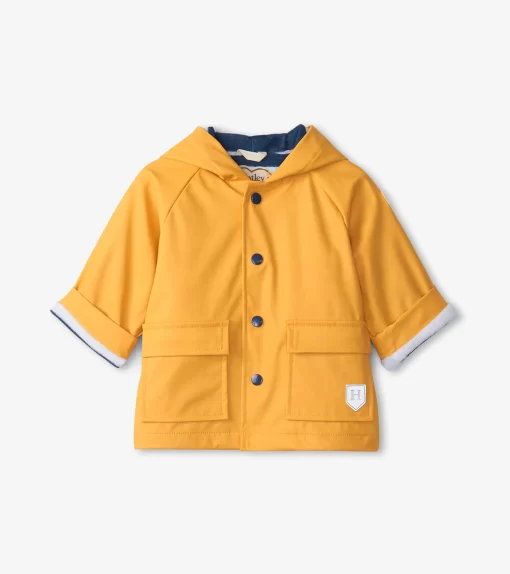 Cure the rainy day blues with this water-resistant yellow rain jacket! Our PVC-free design offers ultimate splash protection and comfort, while the durable construction ensures long-lasting use. Make your baby’s first rainy day outing a memorable one.
