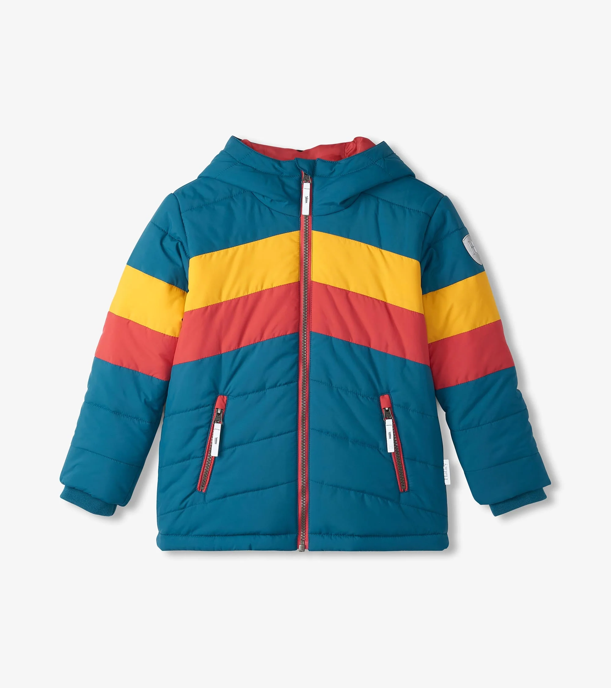 The Boys Aspen Colour Block Puffer Jacket is a winter essential, designed with bold color blocks and soft polyester for ultimate comfort and warmth. Whether for snowball fights or school days, this jacket adds a splash of style to cold-weather fun!