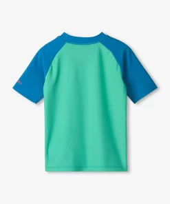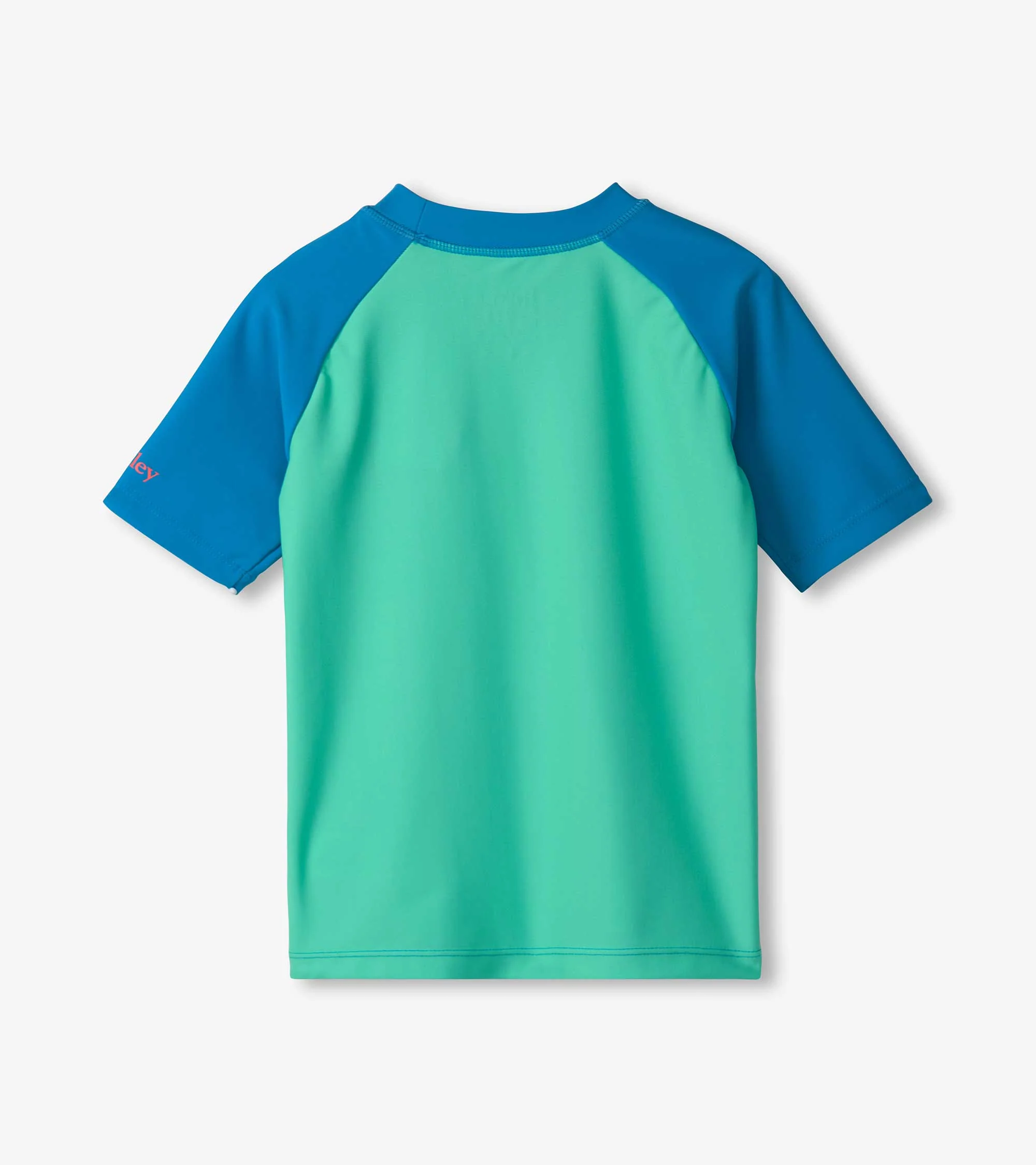 Help your little one stay protected and colorful in our boys blue short sleeve rashguard! This cockatoo-colored rash guard features blue arms and an orange patch pocket. Perfect for their summer days by the pool.