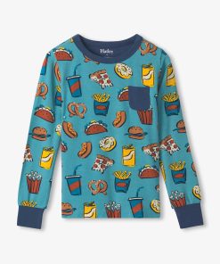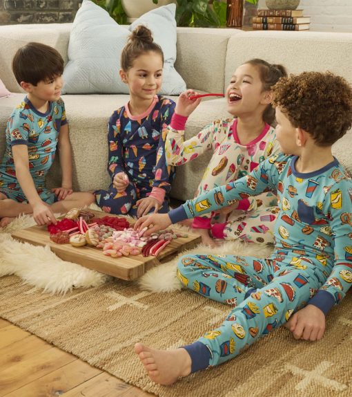 The Boys Carnival Food Bamboo Pajama Set is a fun way to end the day! Made from breathable bamboo fabric, this two-piece set features a playful food-themed print with colorful treats. Lightweight and stretchy, it keeps him comfy through warm nights or laid-back mornings. A great choice for snack-loving little dreamers!