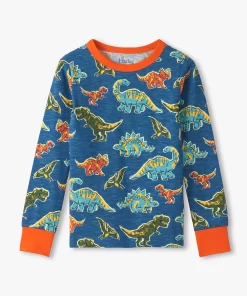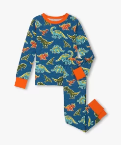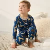 Get them ready for a roar-some bedtime in the Boys Dino Roar Cotton Pajama Set in Blue! Made from soft stretch slub jersey with organically grown cotton, this cozy two-piece set features a playful all-over dinosaur print on a heathered blue background. With a bold orange trim at the neckline, wrists, and ankles, plus no side seams and cuffed edges for a snug fit, it’s designed for dino-sized dreams and all-night comfort.