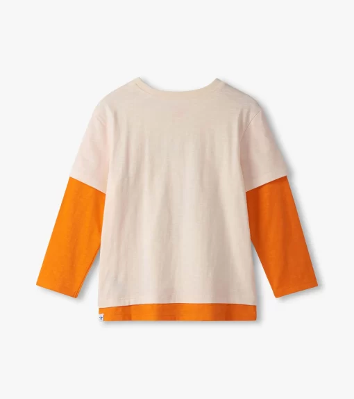 Score serious style points with the Boys Football Fooler Long Sleeve T-Shirt in Orange! Crafted from 100% cotton slub jersey, this crew neck tee combines comfort with a cool layered look, thanks to the stitched-in orange long sleeves under a beige short-sleeved top. A hand-drawn-style American football graphic on the front brings sporty energy, making it a standout piece for active days and casual hangouts.