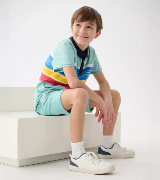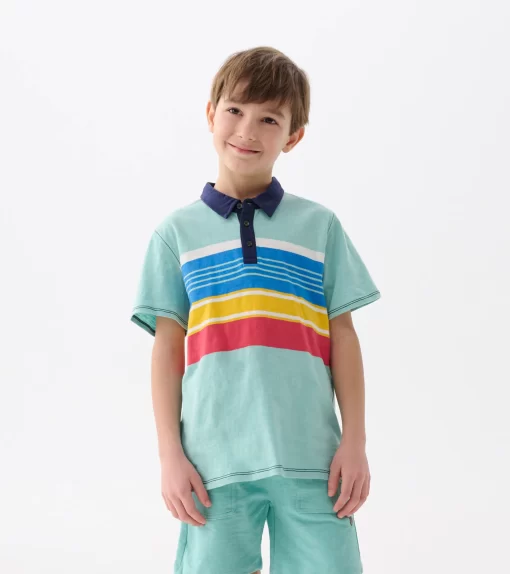 The Boys Striped Teal Polo Tee combines sporty charm with everyday comfort! Made from lightweight cotton, this tee features vibrant teal stripes and a classic collar for a polished yet playful look. Ideal for both casual outings and dressier occasions, it’s versatile enough to pair with jeans or shorts. Perfect for the little guy who loves to stay active and stylish!