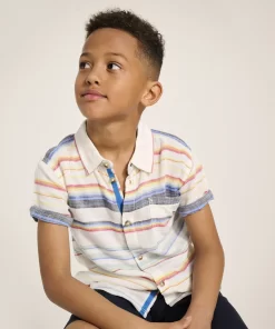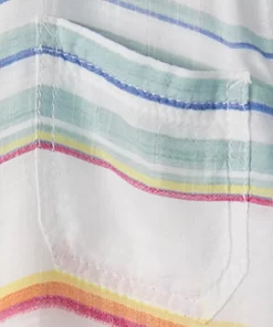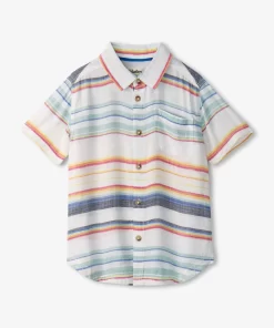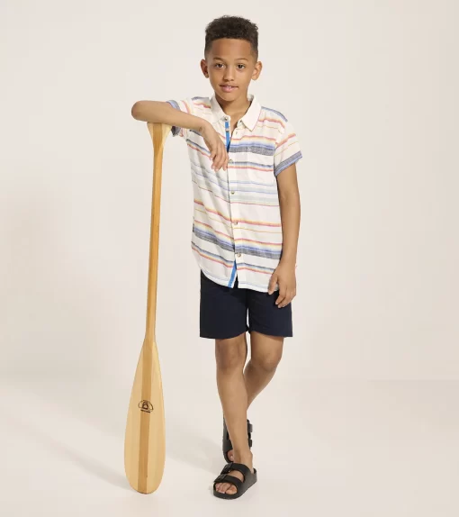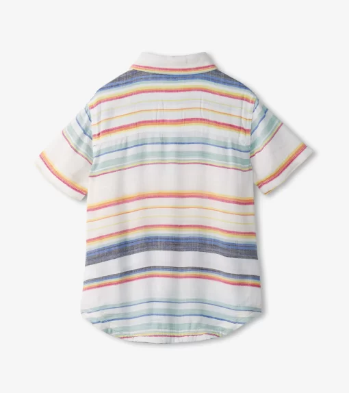 Dress him up in our Boys Summer Stripe Short Sleeve Button Down, and he’ll be the coolest kid at any summer event. This lightweight viscose shirt features a trendy stripe pattern that pairs perfectly with shorts.