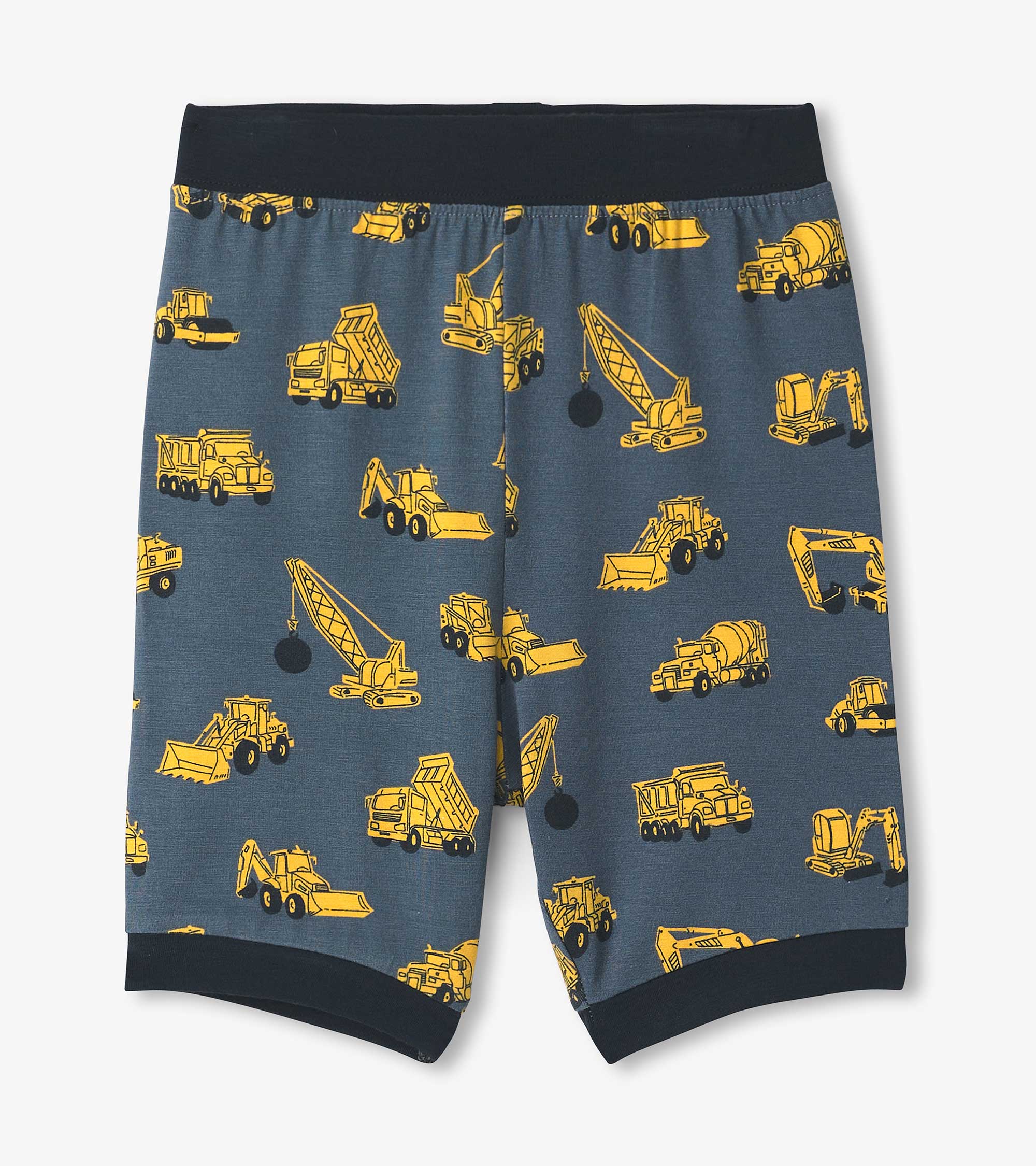 Build sweet dreams with the Boys Under Construction Bamboo Short Pajama Set! Featuring construction-themed prints, this breathable bamboo set includes a short-sleeve top and comfy shorts. Lightweight and stretchy, it’s ideal for keeping him cool during warm summer nights.