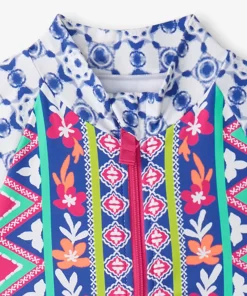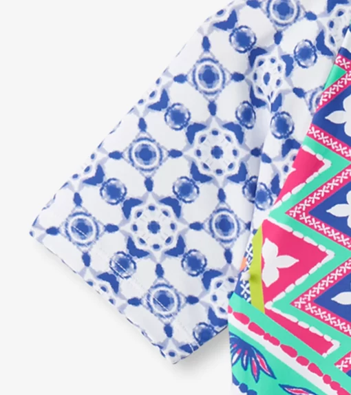 Our Girls Kaleidoscope One-Piece Rashguard is the colourful piece your little one has been waiting for. The nylon and spandex blend offers a comfortable fit while protecting your little one from the sun so they can swim and build sandcastles all day.