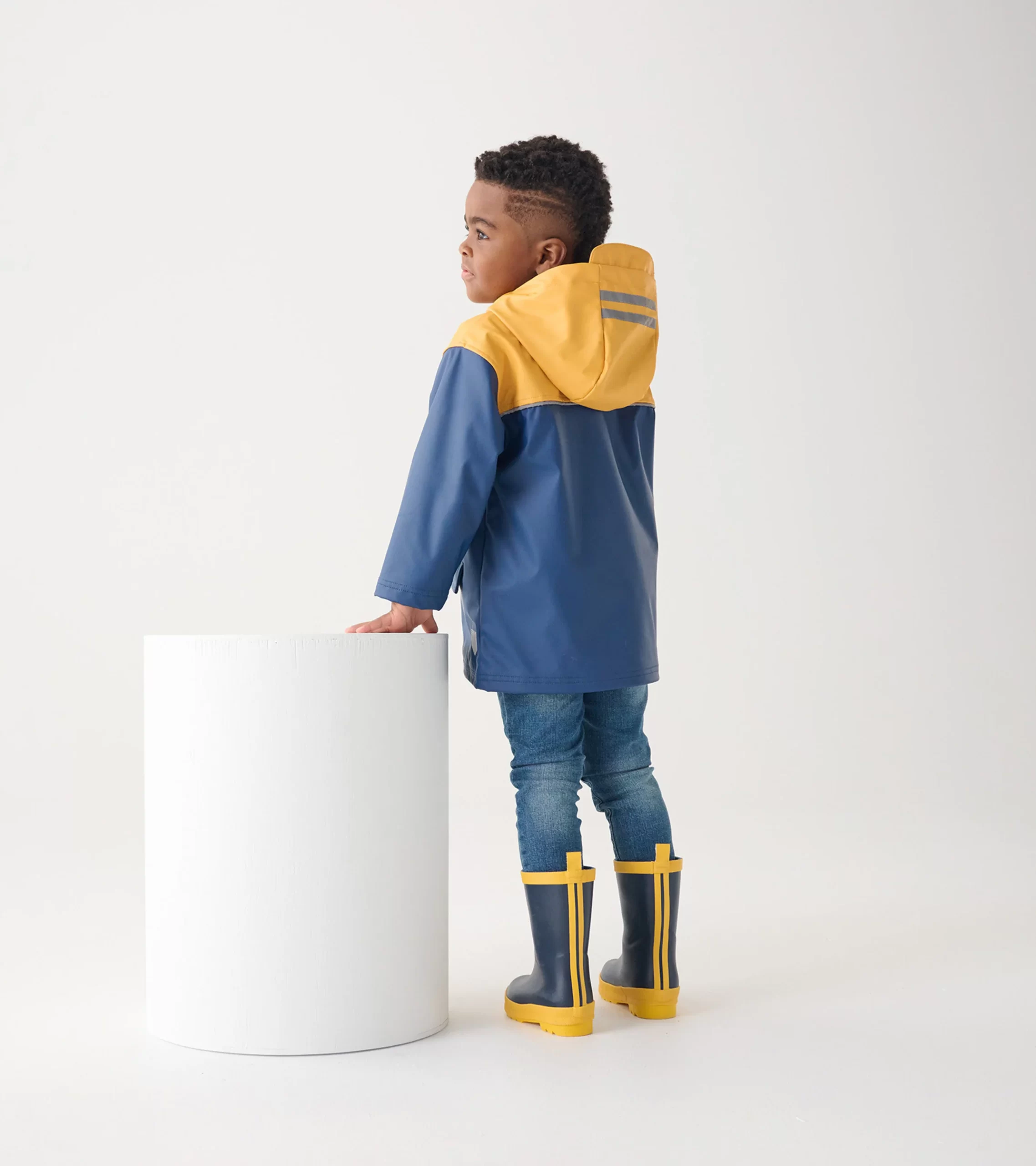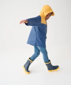 Our water-resistant Boys Yellow & Navy Mariner Rain is perfect for rainy day outings! Whether your little one is splashing through puddles or dancing in the rain, our PVC-free design offers ultimate splash protection and comfort, while the durable construction ensures long-lasting use.