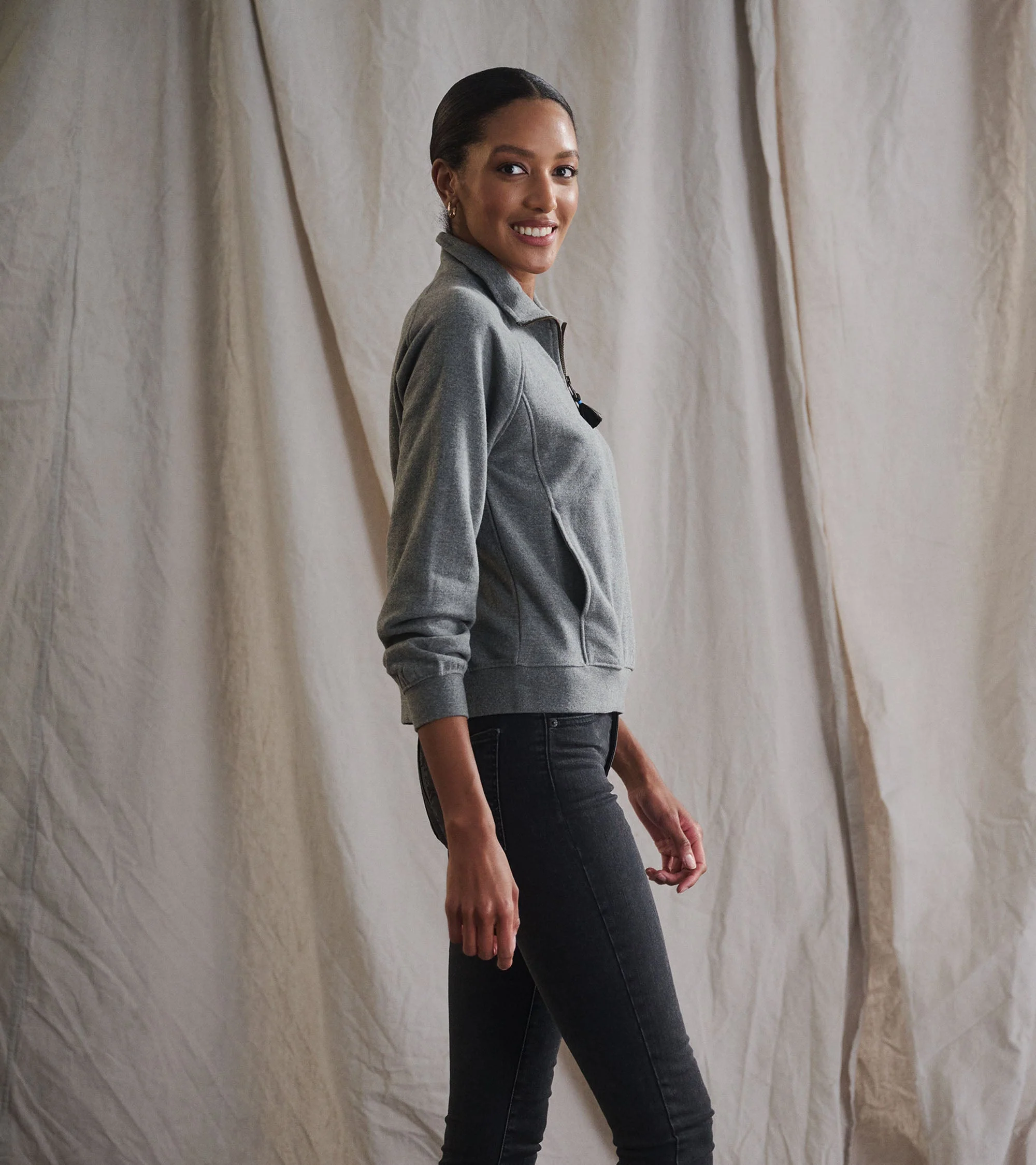 The charcoal heather mock neck pullover is a cozy and stylish piece made from a blend of cotton and polyester. The soft fabric offers warmth and comfort, while the charcoal heather color adds a modern, versatile touch. Ideal for layering or wearing on its own, this pullover is a wardrobe essential.