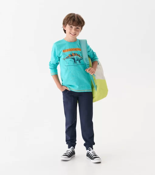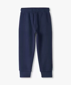 The Boys Patriot Blue Polar Fleece Joggers in Blue are crafted from ultra-soft, lightweight 100% polyester fleece to keep him warm and comfortable all day long. Designed in a deep patriot blue, these joggers feature front slash pockets with visible stitching, an elastic waistband, and a functional blue drawstring accented with black highlights for an athletic touch. Cuffed ankles offer a snug fit, while a small brown Hatley logo appliqué stitched on the left pocket adds a refined finish. Built for movement and softness, they’re a go-to for playtime or downtime.