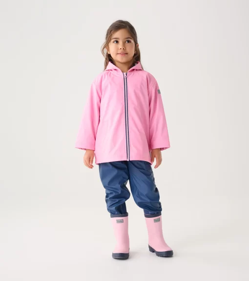 Cure the rainy day blues with this water-resistant pink rain jacket! Our PVC-free design offers ultimate splash protection and comfort, while the durable construction ensures long-lasting use. Make every rainy day outing a memorable one.
