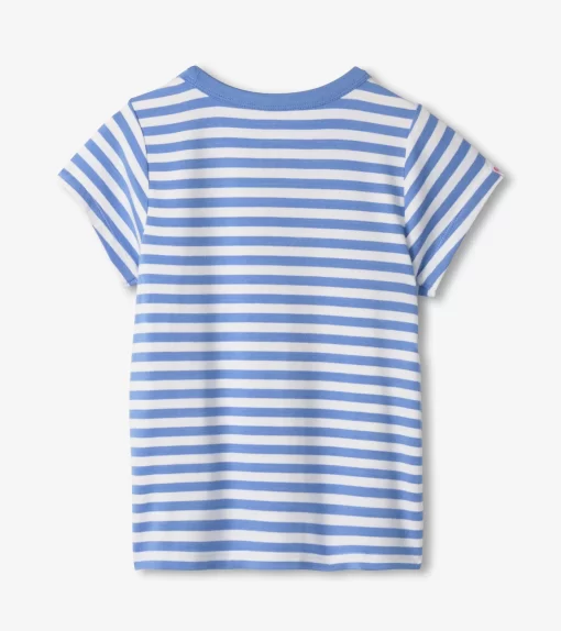 The Girls Cornflower Stripes Bamboo Tee adds a pop of charm to her outfits! Made from breathable bamboo and elastane, this tee features delicate cornflower stripes and a stretchy, comfy fit. Great for layering or wearing solo on sunny days.
