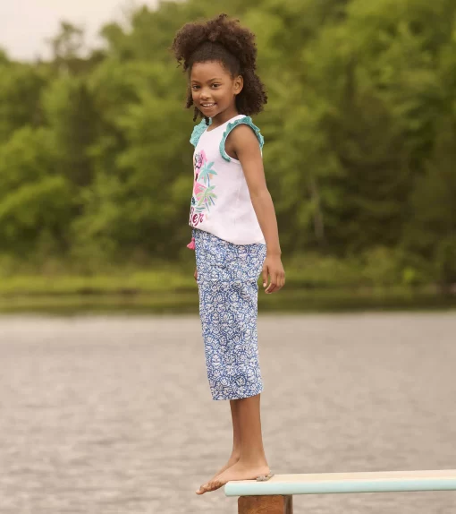 For the little one who loves flowers and fashion, our Girls Floral Shibori Cropped Culottes are a must-have! These cotton culottes are trendy with their shibori print and super comfy for all her summer day discoveries.