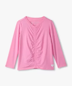 The Girls Fuchsia Pink Gathered Front Top brings vibrant energy and all-day comfort in a lightweight, stretchy nylon-spandex jersey blend. Designed in a bold fuchsia pink, this breathable top features a classic round neckline, long sleeves, and eye-catching gathered detailing at the center front for a touch of stylish texture.
