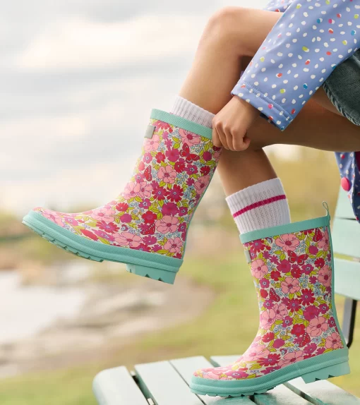 The Girls Groovy Flowers Matte Rain Boots are a rainy-day essential! Made from durable rubber, these boots feature cheerful floral patterns and a matte finish for a stylish look. Designed to keep little feet dry and comfortable, they’re perfect for puddle-jumping and outdoor adventures.