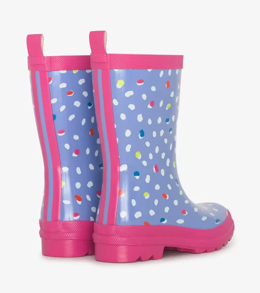 Brighten up rainy days with the Girls Lots of Dots Shiny Rain Boots! Made from glossy rubber, these boots feature a playful polka dot design that adds cheer to gloomy weather. Durable and comfortable, they’re a fun and practical choice for any outdoor adventure.