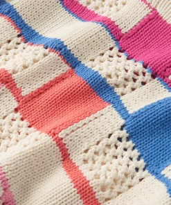 The Girls Mix Stitch Sweater in Natural is a cozy yet stylish layer made from 100% breathable cotton yarn, perfect for all-day wear. Its neutral base is elevated with a creative mix of stitches, including eye-catching open-knit lattice panels and vibrant colour pops. Dark pink, blue, orange, and light pink squares are playfully arranged with a stripe underneath. Designed with a classic crew neck and long sleeves, this sweater balances craftsmanship with charm for a look that’s modern, artistic, and effortlessly comfortable.