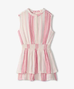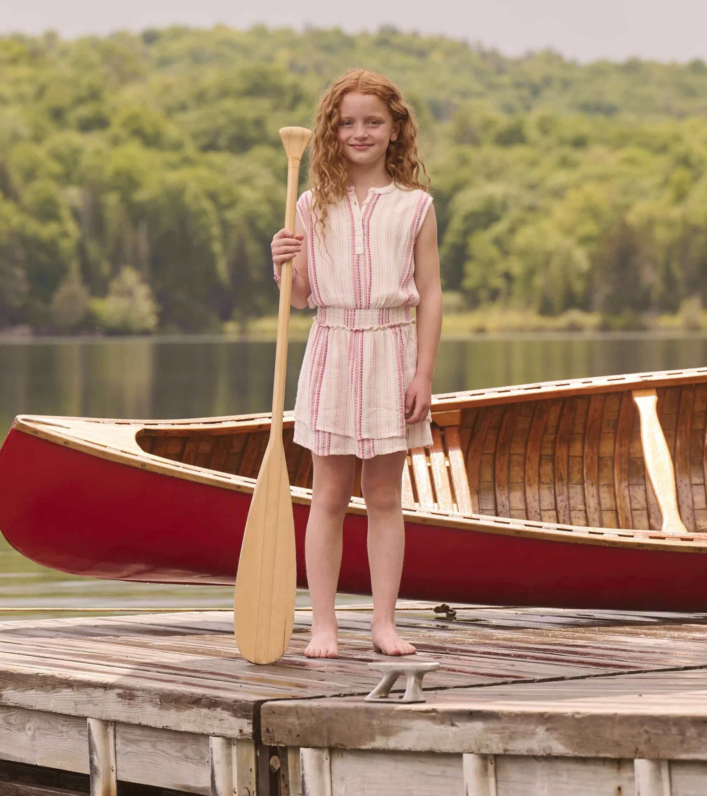 Summer is the perfect time to break out our Girls Ribbon Stripe Smocked Waist Dress! Crafted from a soft rayon blend, the flattering sleeves and smocking details are sure to make this a summer favourite.