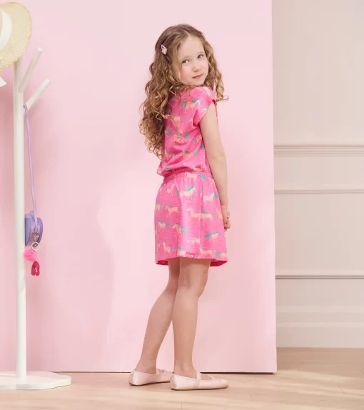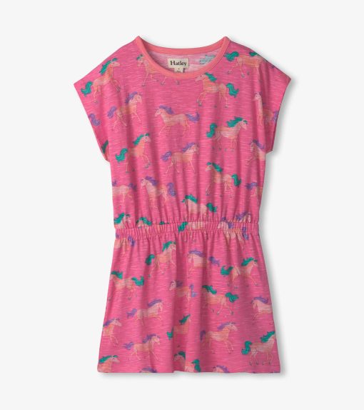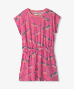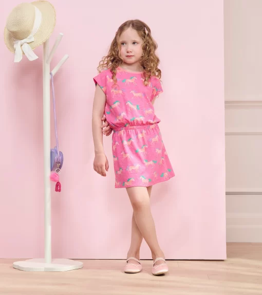 Add a sprinkle of magic to her day with the Girls Shimmer Horses Relaxed Dress! Crafted from cozy cotton, this dress features enchanting horse graphics with a subtle shimmer that’s perfect for little dreamers. The relaxed fit allows for free movement, making it ideal for twirling, running, and everything in between. Whether she’s at a party or enjoying playtime, this dress delivers comfort and charm in equal measure.