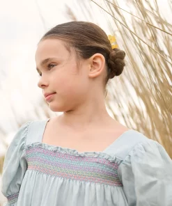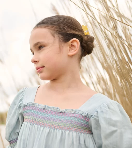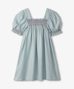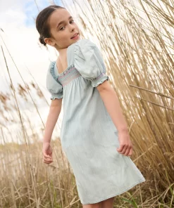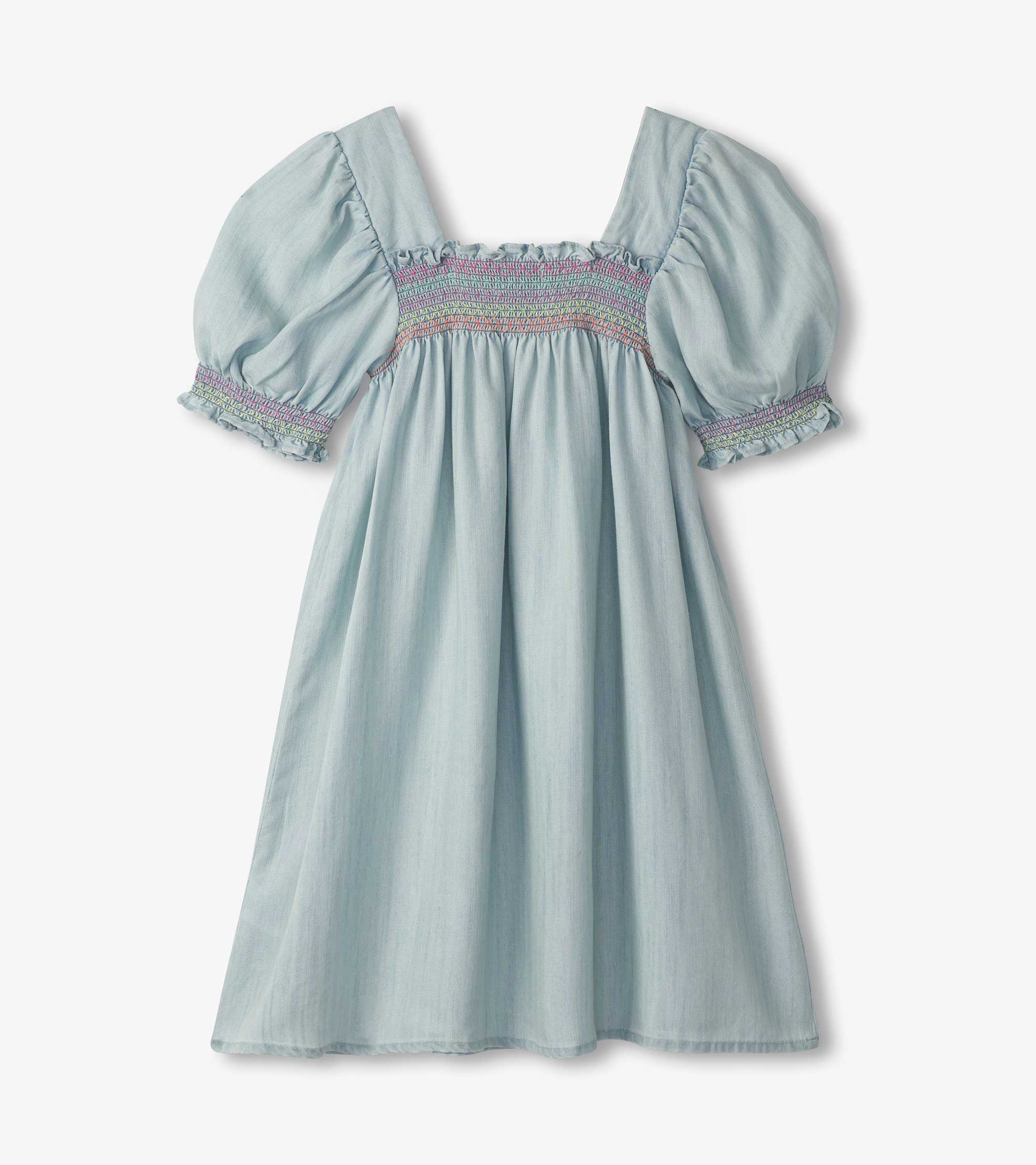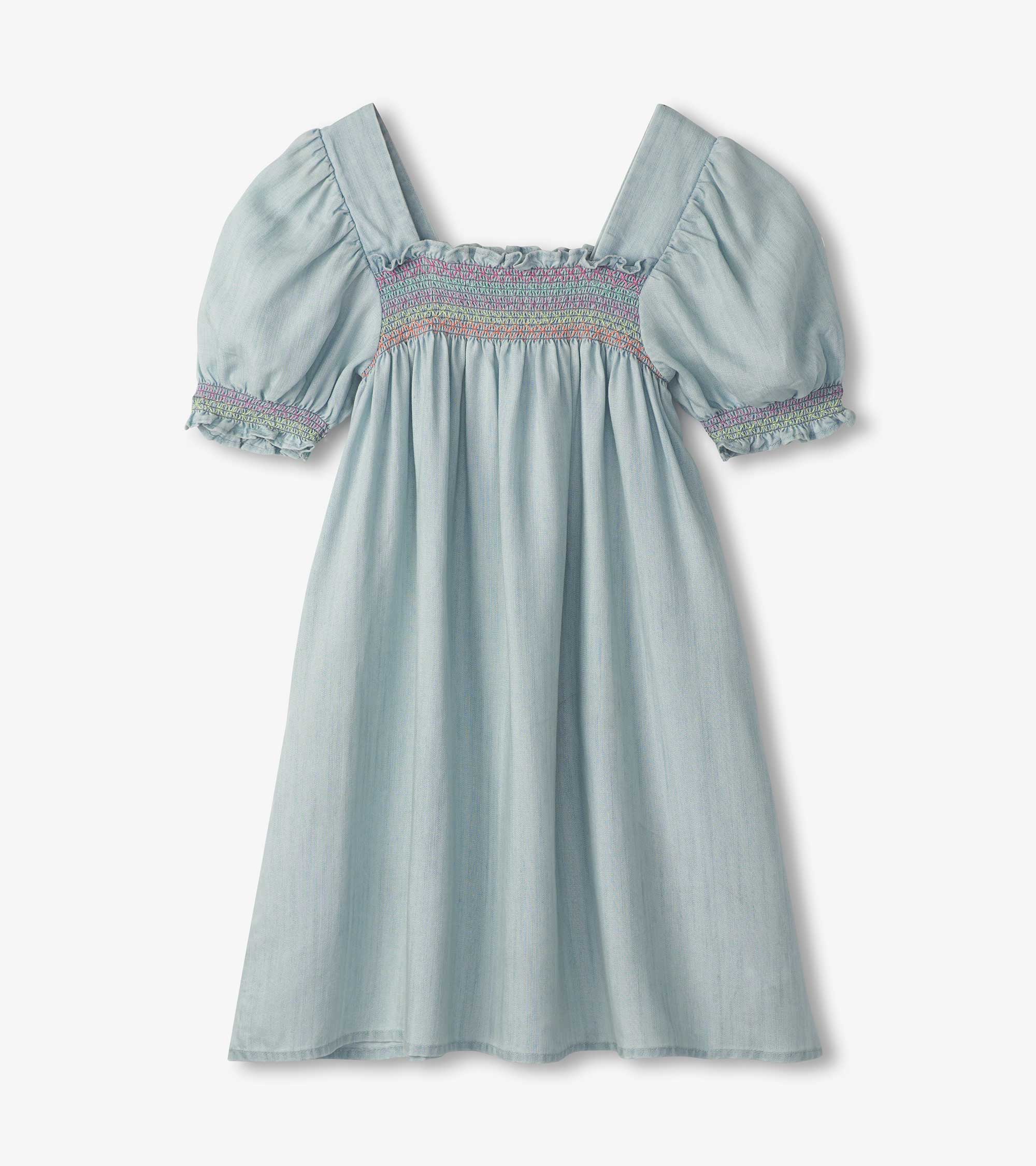 The Girls Soft Blue Denim Puff Sleeve Smocked Dress is a perfect mix of comfort and elegance! Made from soft lyocell, this dress features stylish puff sleeves and a smocked bodice for a flattering fit. The lightweight denim-look fabric makes it versatile enough for playdates or family gatherings. Pair it with sneakers or sandals for a trendy and comfortable outfit.