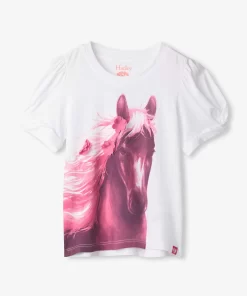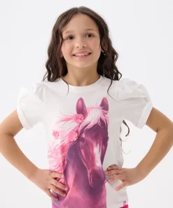 Saddle up for style with the Girls Soft Horse Twisted Sleeve Tee! Made from lightweight cotton, this top combines comfort with an equestrian-inspired flair. The whimsical horse graphics will captivate pony lovers, while the twisted sleeves add a trendy, playful touch. Whether she’s galloping through playdates or enjoying a family day out, this tee ensures she looks adorable while staying comfy all day. A perfect pairing for jeans, shorts, or skirts!
