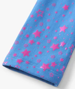 Shine bright in cozy style with the Girls Star Sapphire Cozy Leggings! Made for girls who love a hint of cosmic sparkle, these blue stretch fleece leggings feature holographic magenta stars that twinkle from shin to ankle and a snug elastic waistband.