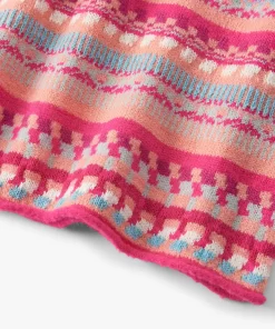 Help her radiate warmth in the Girls Sunset Stripe Sweater Dress, designed with dropped shoulders and a jacquard knit with a bold fuchsia background. Featuring a modern sunstripe pattern in bright multicoloured tones, this cozy sweater dress includes long sleeves, jersey roll edging at the neck, cuffs, and hem, and a soft knit blend perfect for all-day wear.