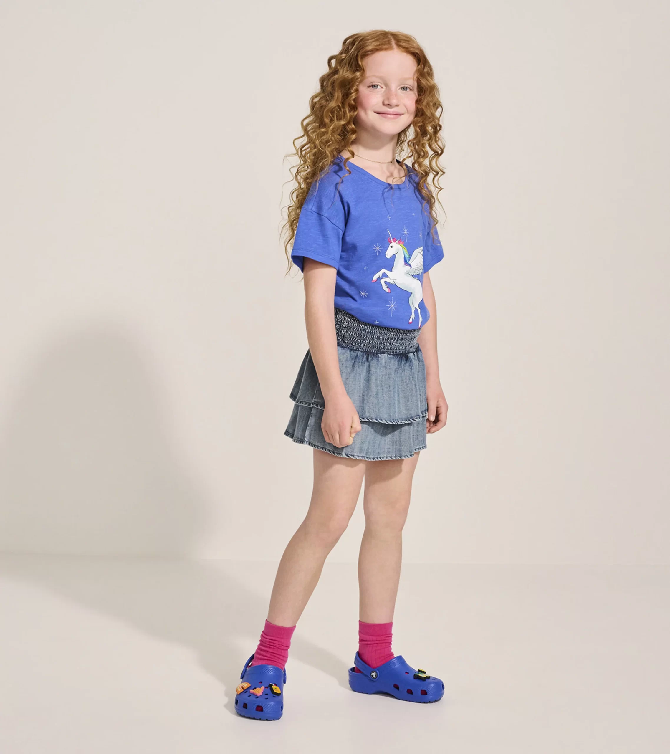 Our Girls Tencel Smocked Skirt combines comfort with style. The soft Tencel fabric and smocked design make it a summer wardrobe staple, versatile enough for play dates or picture days.