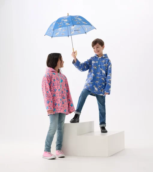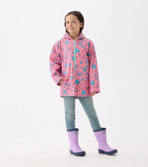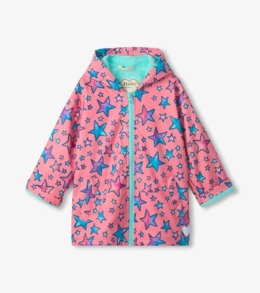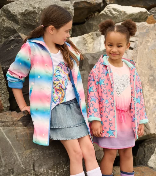Let her brighten rainy days with the Girls Watercolour Doodles Zip-Up Rain Jacket! Crafted from durable polyester, this jacket features artistic watercolor designs that add a pop of creativity to her outfit. Lightweight and water-resistant, it includes a zip-up front and hood for extra protection. Perfect for little artists who love to play in the rain.