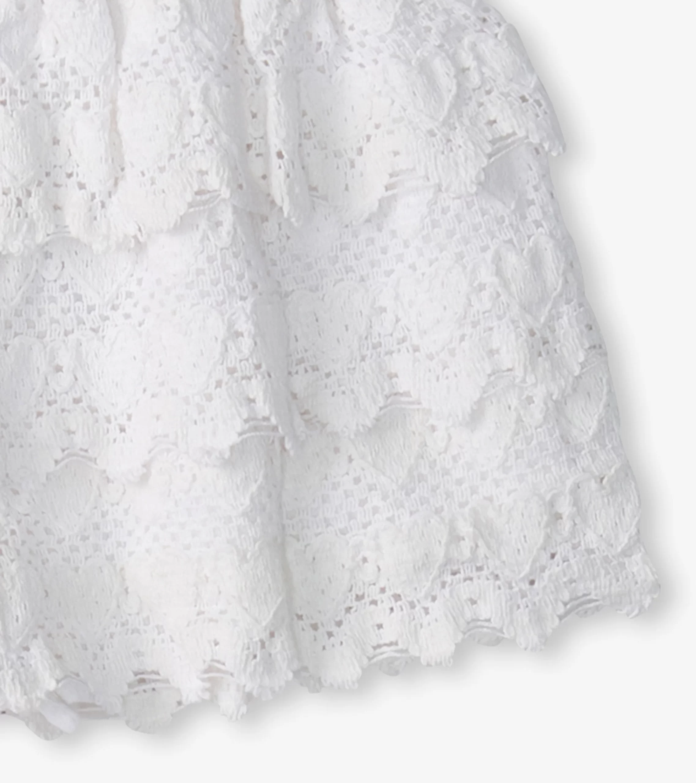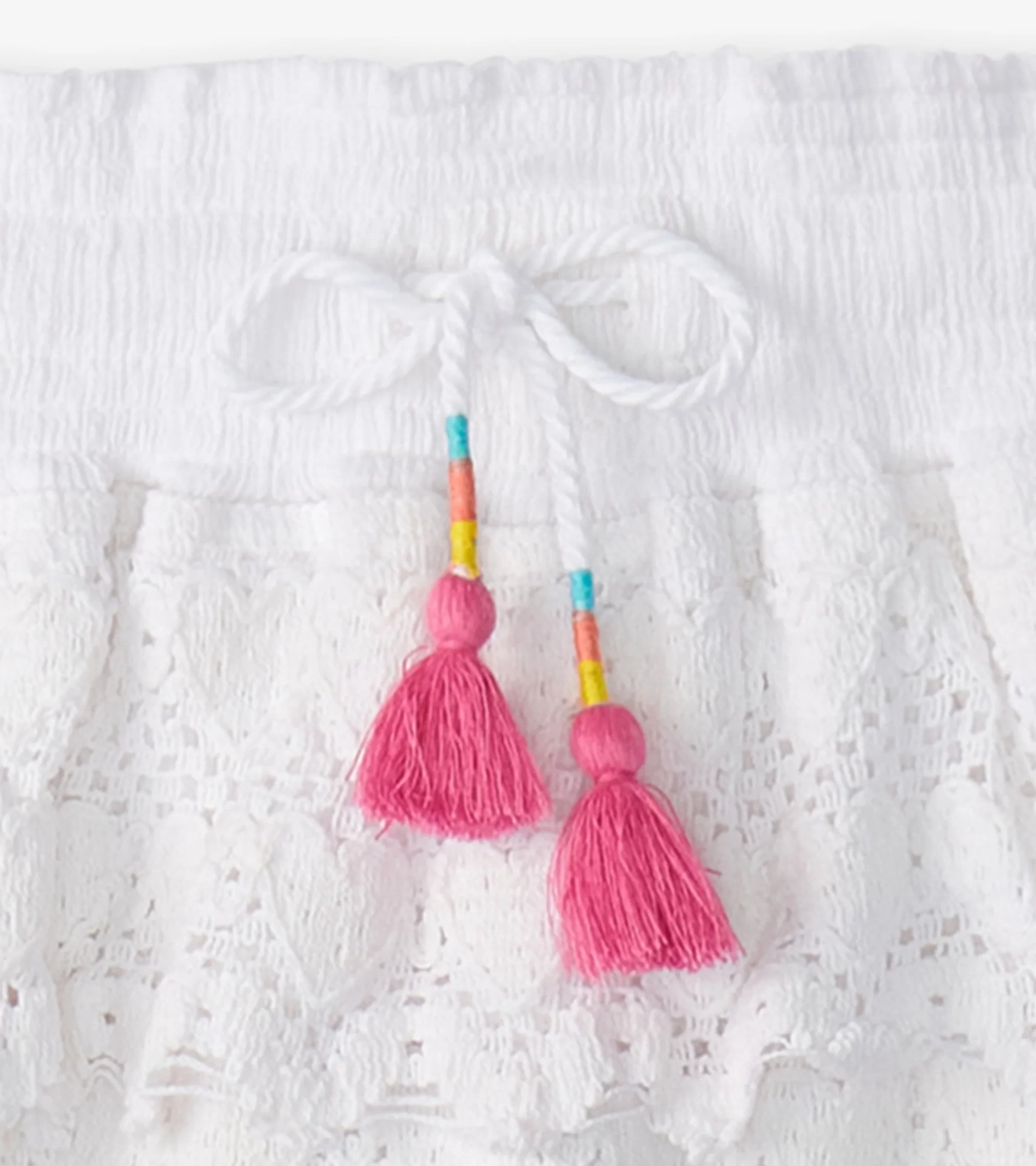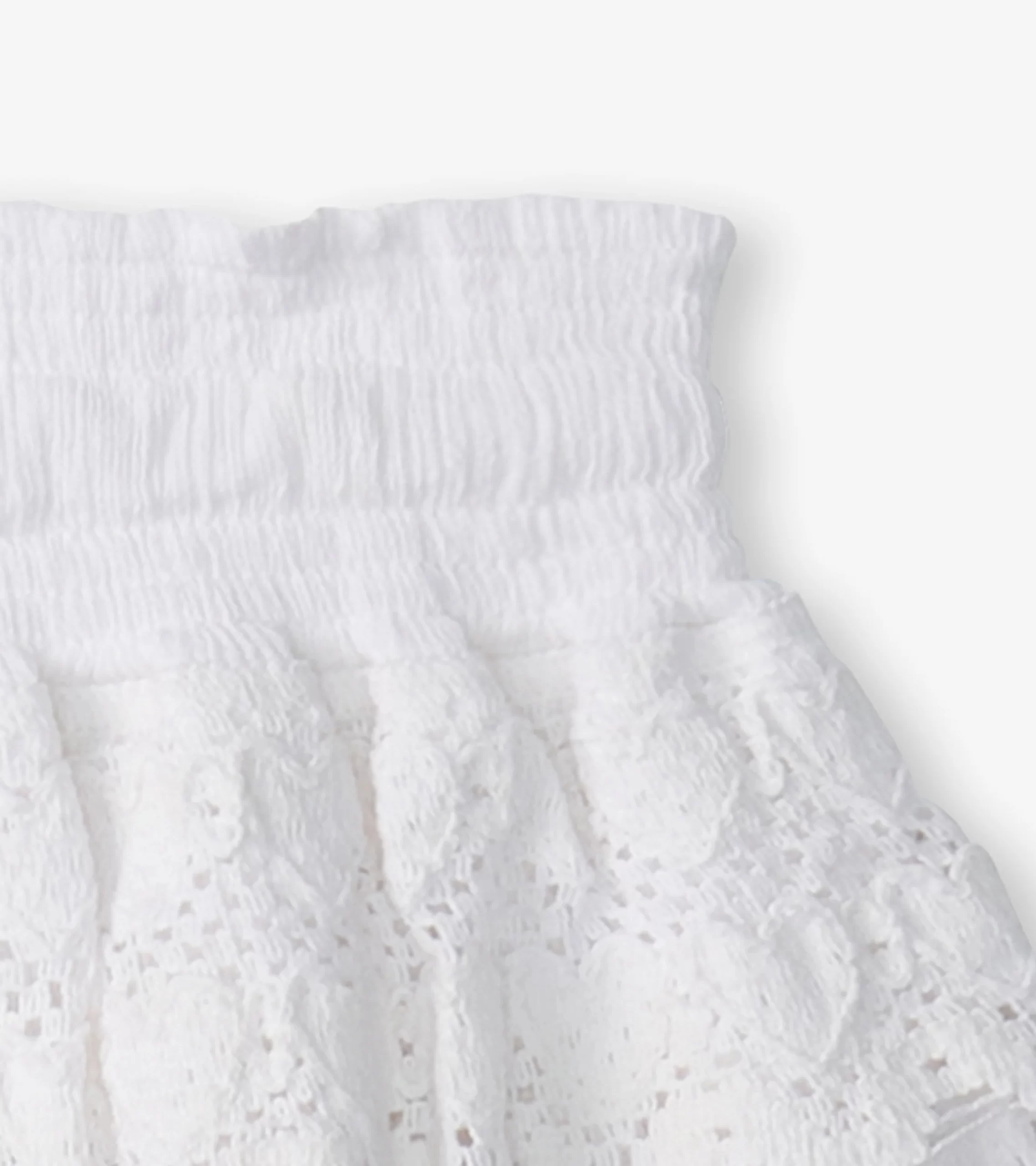 Double the fun with our Girls White Hearts Floaty Skort! Combining the sweetness of a skirt with the practicality of shorts, this cotton piece is adorned with heart prints, perfect for nonstop days filled with love and play.