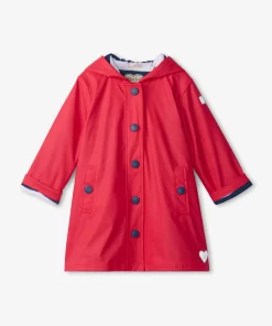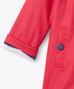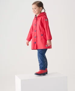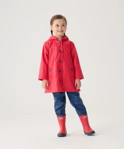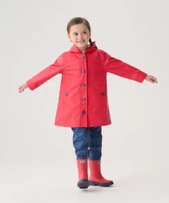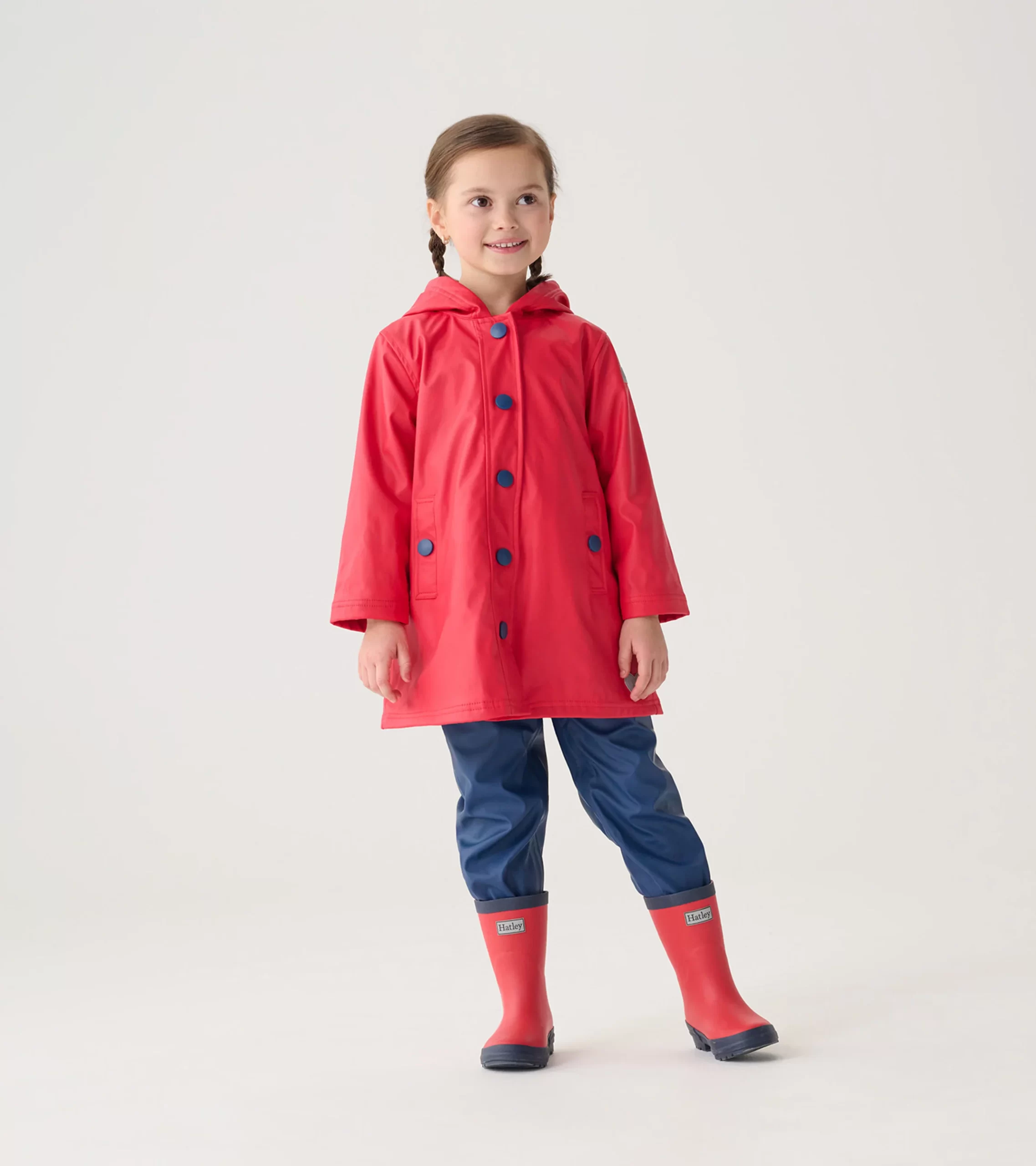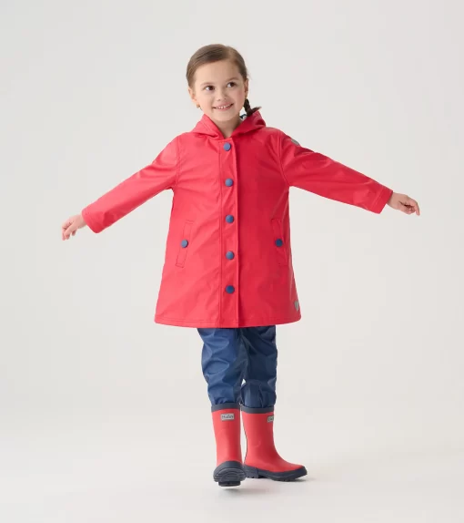 This red and navy water-resistant raincoat is the perfect attire for any rainy day outing! Whether it be for splashing through puddles or dancing in the rain, our PVC-free design offers ultimate splash protection and comfort, while the durable construction ensures long-lasting use.