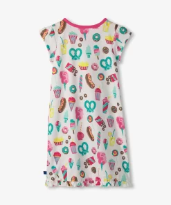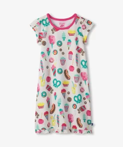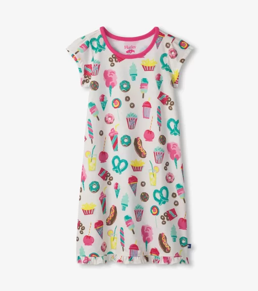 The Girls Carnival Treats Nightdress is a bedtime delight! Made from soft polyester, this nightdress features playful carnival treat graphics like cotton candy and popcorn. Its lightweight design keeps her comfy for a great night’s sleep, making it ideal for sweet dreams and lazy mornings.