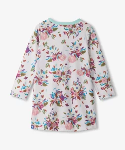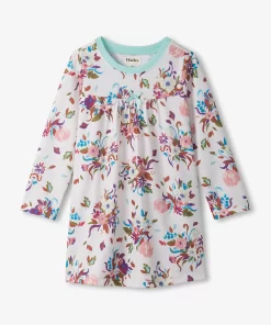 Wrap her in whimsical comfort with our Girls Fall Floral Long Sleeve Nightdress in Natural. Made from ultra-soft 100% polyester jersey, this cozy nightgown features an all-over colourful floral print on a calming natural background. Delicate gathers and pleated detailing at the front add a graceful flow, while a pale turquoise satin bow, perfectly pre-tied, sits sweetly at the chest, matching the soft neckline for a charming finish.
