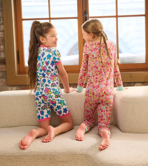 The Girls Groovy Flowers Bamboo Pajama Set brings floral flair to bedtime! Crafted from soft and breathable bamboo fabric, this two-piece set features cheerful flower patterns that brighten her nighttime routine. Stretchy and lightweight, it’s designed for ultimate comfort during sleep or lounging.