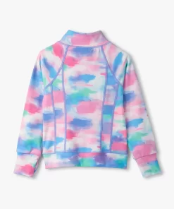 The Girls Sunset Active Jacket blends sporty style with dreamy colours thanks to its cloud-like watercolour pattern in pink, aqua, and blue. Designed in crisp white with a fitted shape, this full-zip piece features raglan sleeves, stylish seam lines, a two-piece mock collar, and thumbhole cuffs for extra comfort. Front seam pockets and a bright blue zipper complete this athletic must-have.