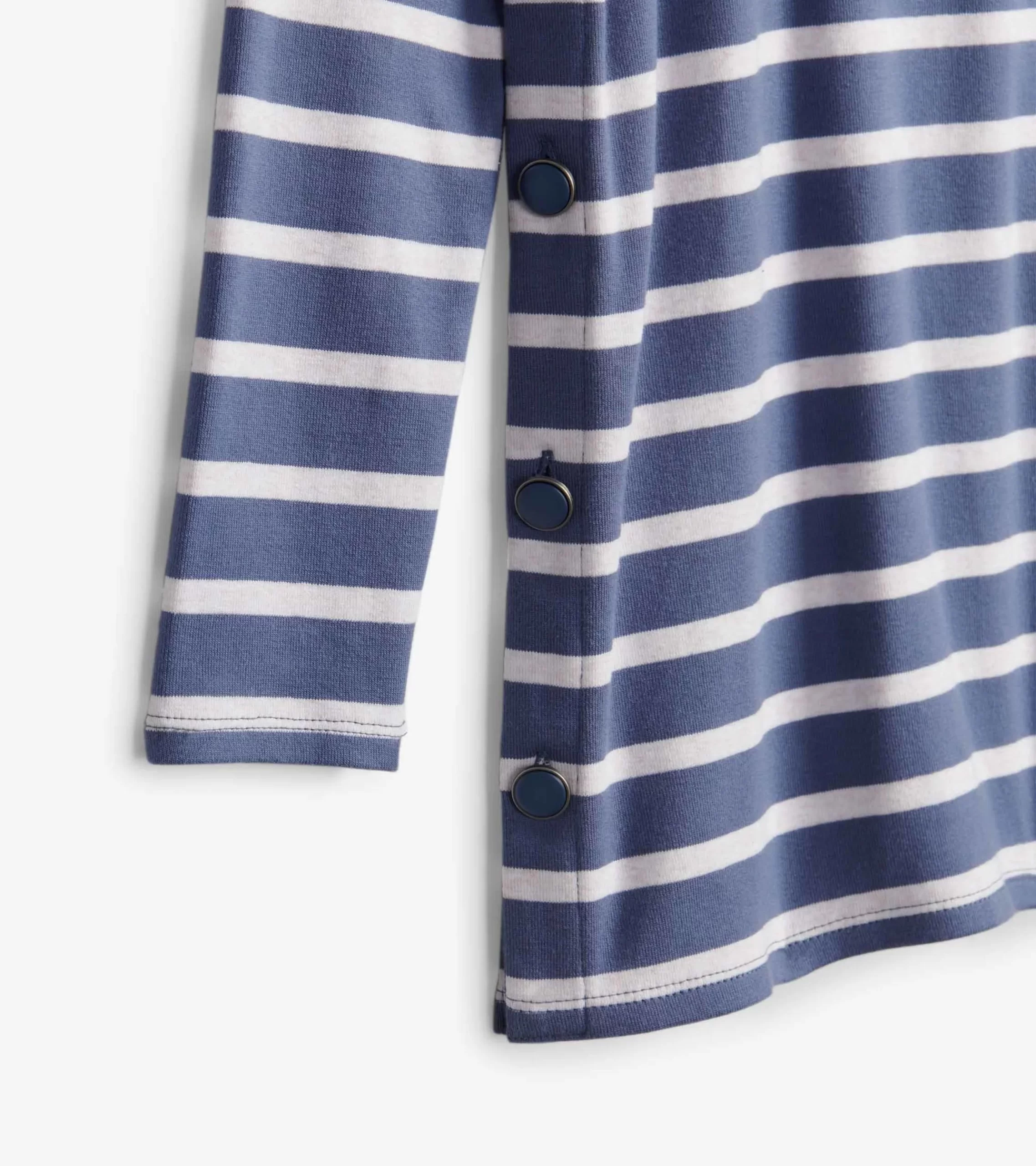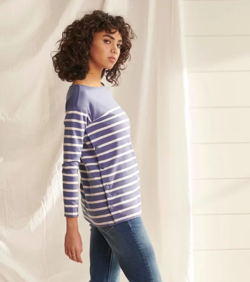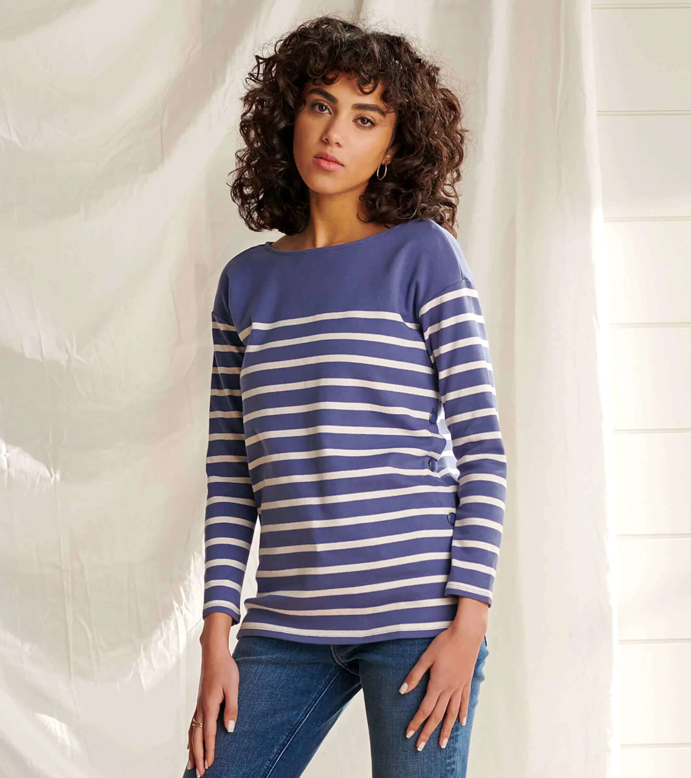 We love a good Breton as much as the next person, but we simply cannot resist giving classics little details to make them even more special. To this Ali top, we added contrasting button closures down the sides and bracelet-length sleeves.