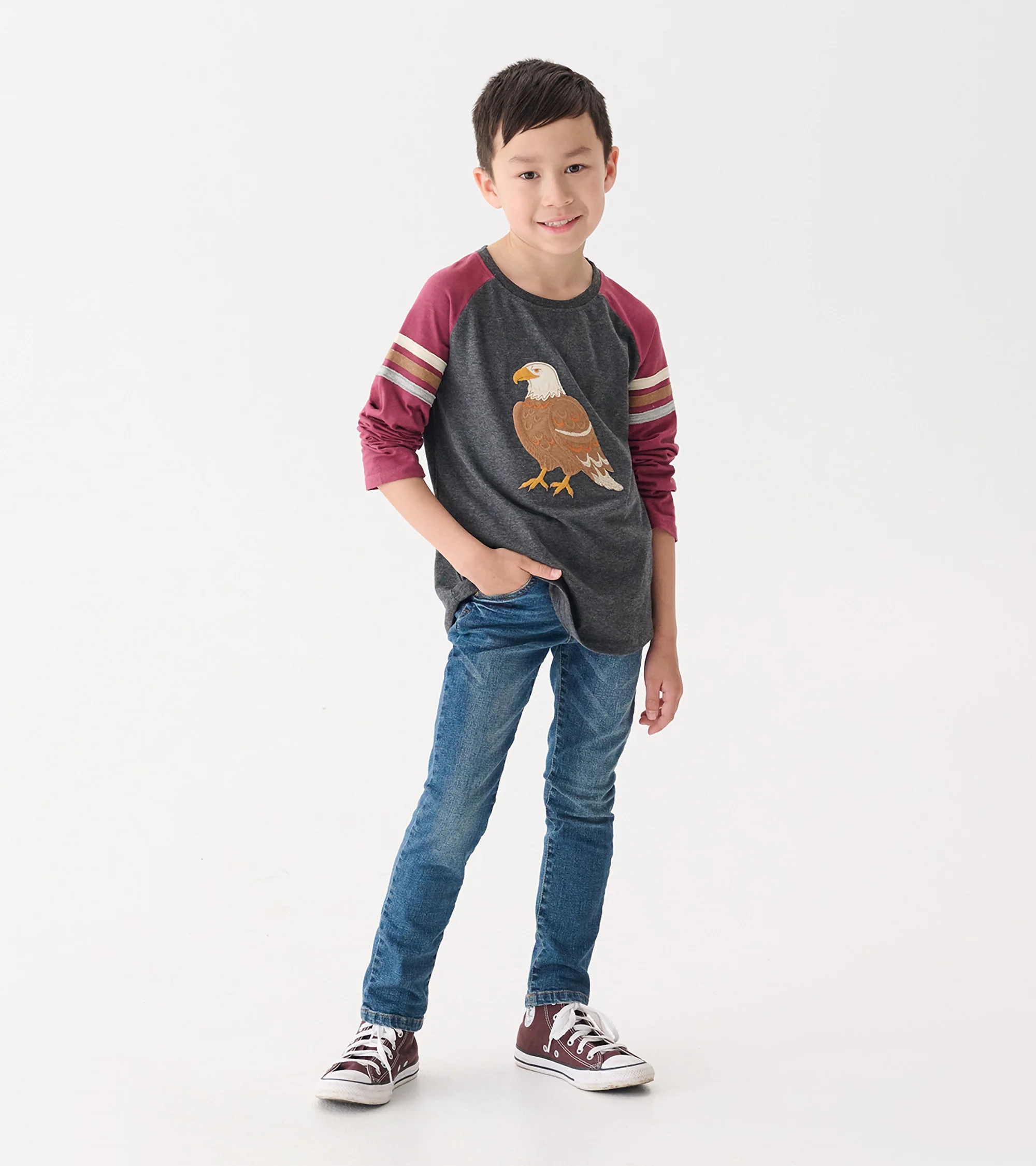 These classic blue jeans are an essential addition to your little ones wardrobe. Fit for an adventurer, they will love the stretchy cotton feel. Style with a button-down or graphic tee, and they will be ready to take on the day!