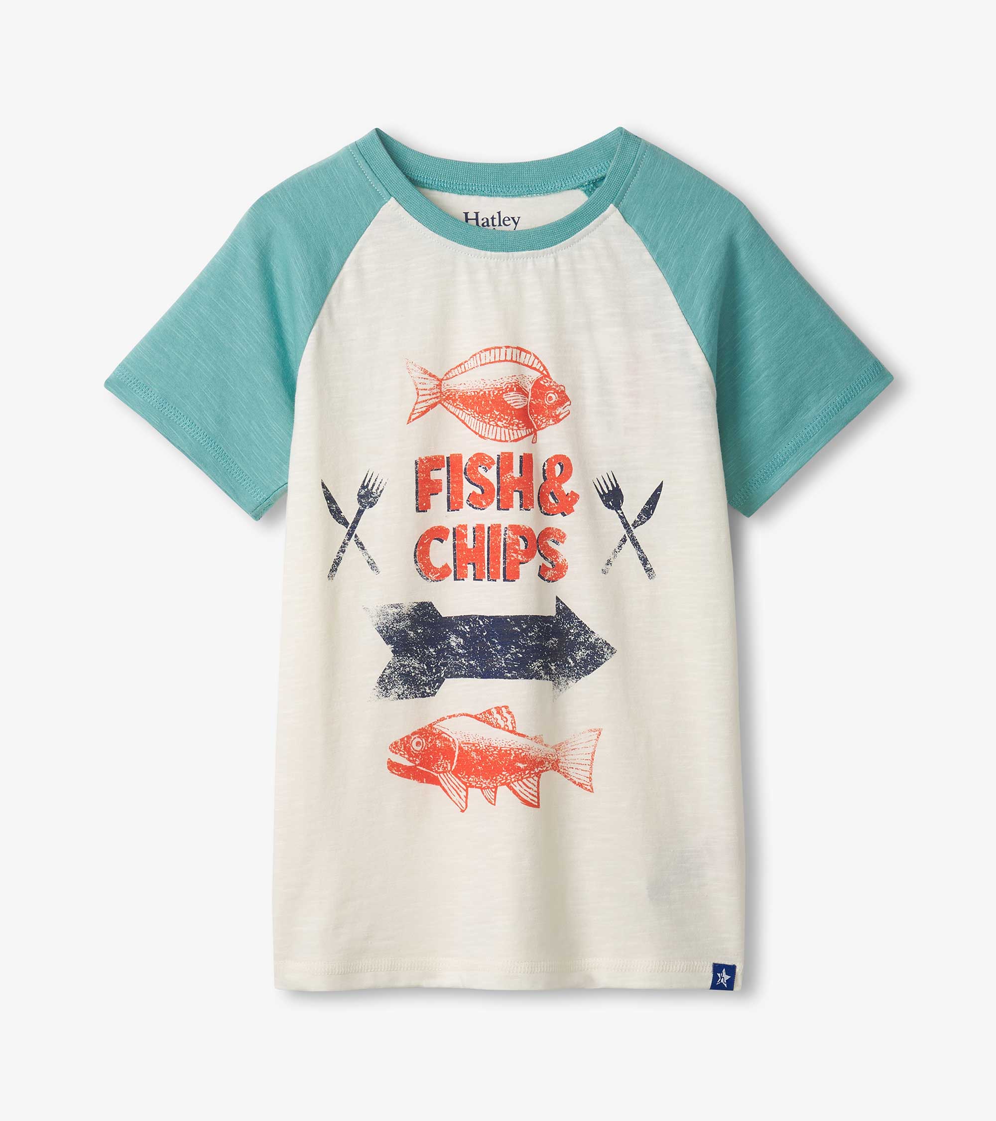 The Boys Fish & Chips Raglan T-Shirt adds a playful touch to his everyday outfits! Made from soft cotton, this tee features quirky fish and chips graphics and sporty raglan sleeves. Lightweight and comfortable, it’s great for school, playdates, or casual days out.