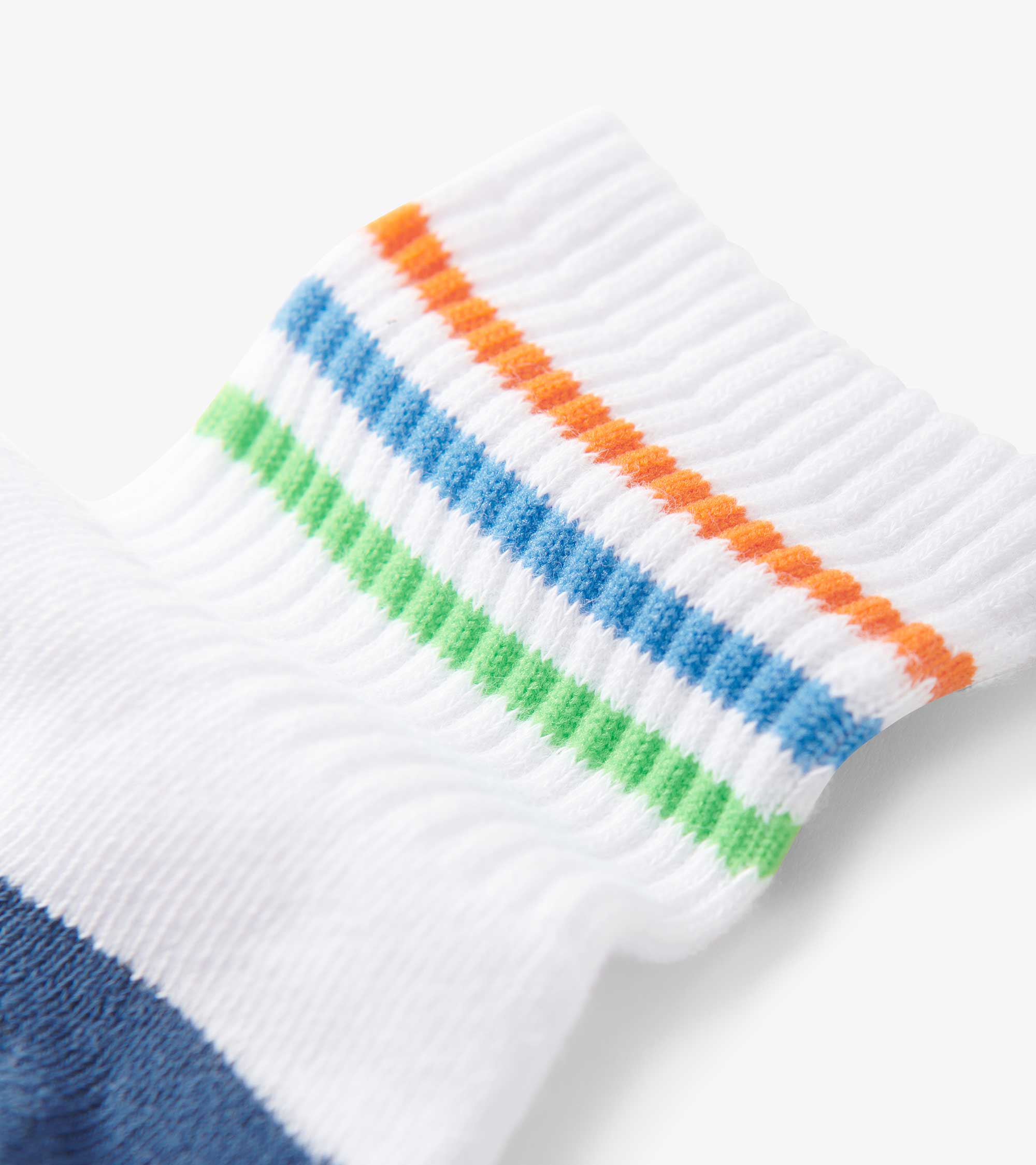 Add a touch of fun to his wardrobe with the Boys Spring Stripes Crew Socks! Featuring cheerful spring stripes, these cotton-blend socks are soft, stretchy, and perfect for active days. A must-have for little adventurers!