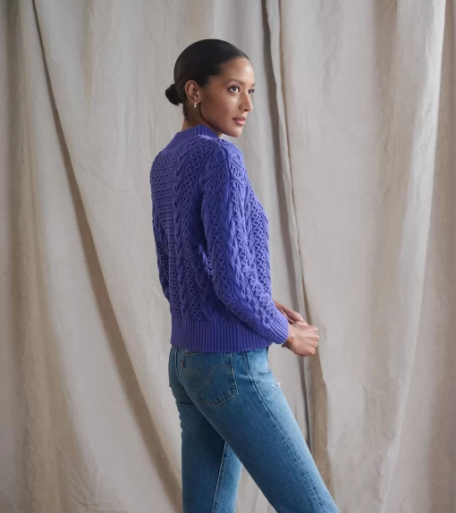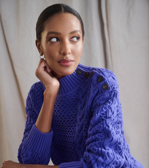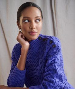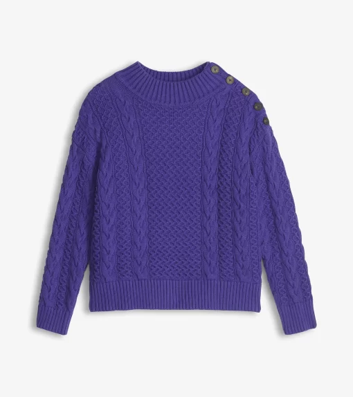 In ultra violet, the Button Neck Sweater combines the softness of cotton with the luxury of cashmere. The vibrant ultra violet hue adds a bold and modern touch, while the button neck detail offers a unique and stylish element. Ideal for making a statement while staying cozy.